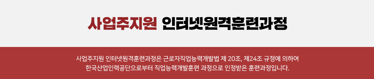 2. ② 시험과 과제를 대리・허위 작성 및 기타 부정한 방법으로 평가에 임할 경우 수료할 수 없으며, 향후 귀하가 소속되어있는 사업주는 1년간 고용보험법 상의 직업능력개발훈련 비용 지원을 받을 수 없게 될 수도 있습니다.